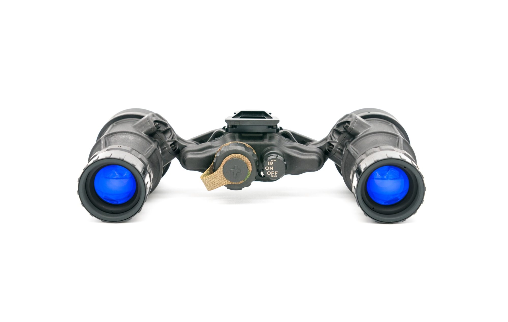 In addition to a very rugged design, the DTNVS features independent pod shutoff when articulated. This means that when the pods are articulated out away from the eye they shut off eliminating any visible glow and preventing accidental light damage when articulated. This is a particularly helpful feature for users that are using handheld thermal scanners or using a weapon mounted clip-on or thermal device. This also gives the user the option to run only one pod and keep one eye unaided.